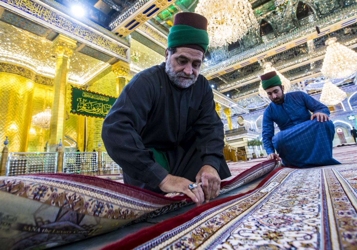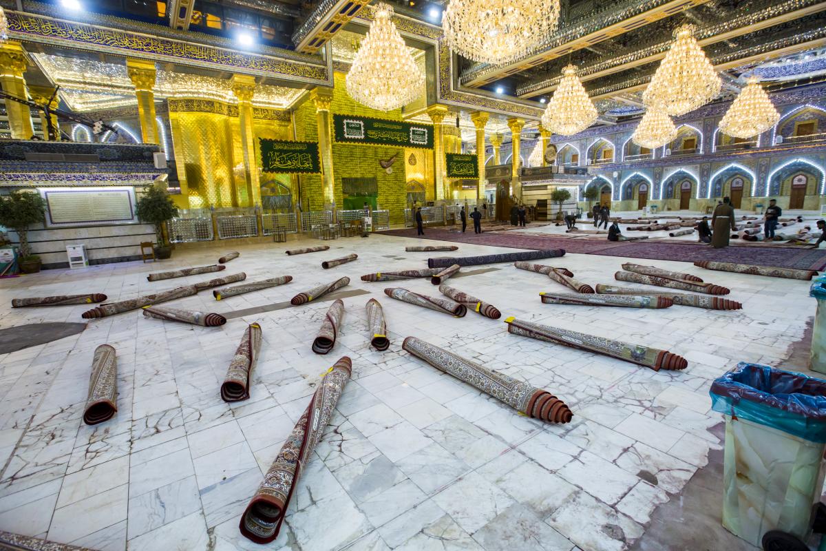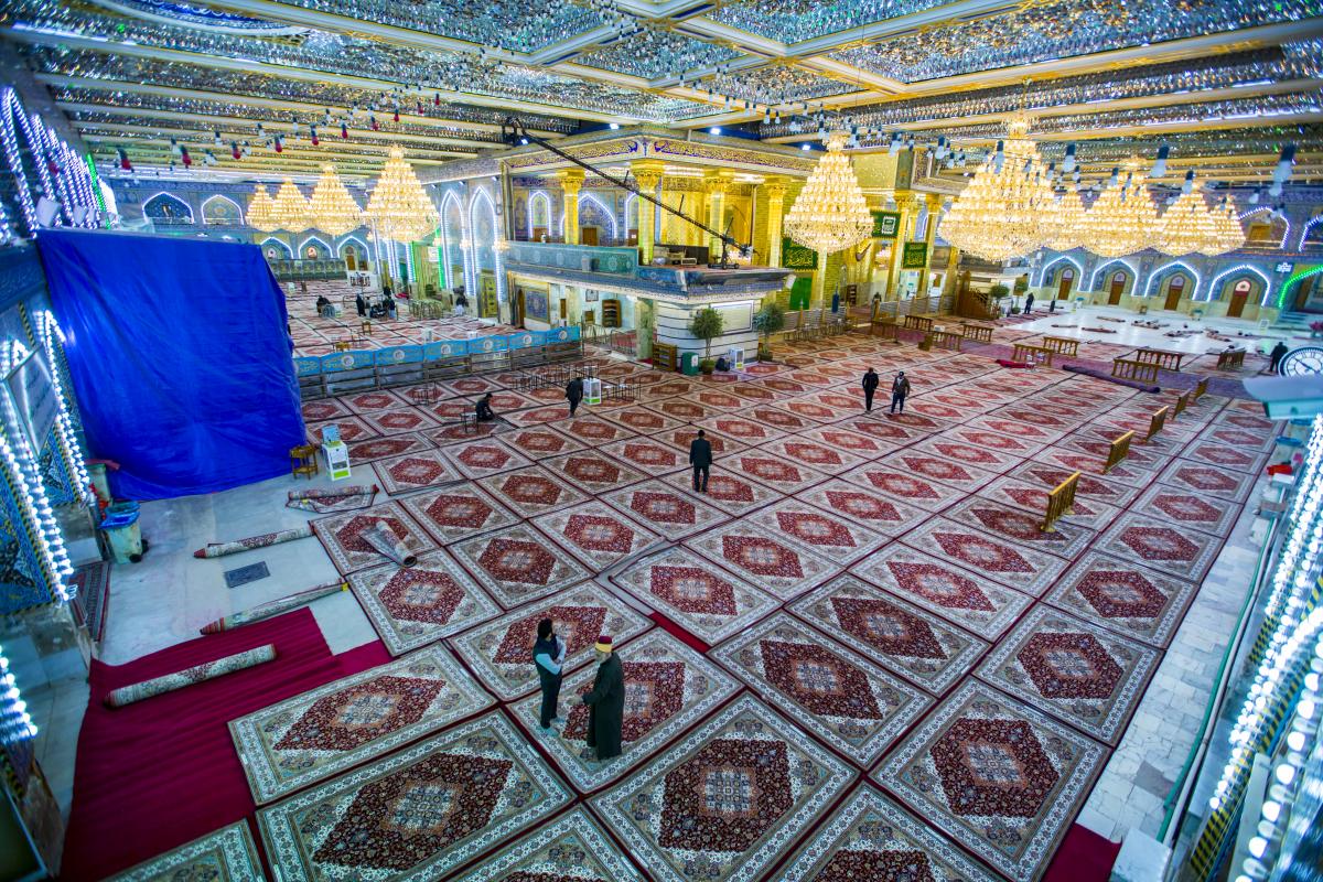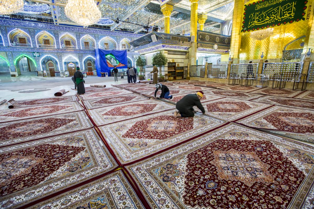 حيث شرعت كوادرُ قسم رعاية الحرم في العتبة العبّاسية المقدّسة وبمساعدة عددٍ من منتسبي الأقسام الأخرى بأعمال الفرش، وانتهت منه اليوم الخميس (3جمادى الأولى 1440هـ) الموافق لـ(10كانون الثاني 2019م). السجّاد المفروش وبحسب ما بيّنه مسؤولُ شعبة الحرم المقدّس في القسم المذكور الأستاذ زين العابدين عدنان: - عدد السجّاد المفروش بلغ (750) سجّادة. - يبلغ قياس السجّادة الواحدة 3م × 2متر. - السجّاد مصنّع في إيران تبعاً لقياساتٍ خاصّة بالصحن والحرم الطاهرين. - لون السجّاد هو الأحمر، منقوشٌ بزخارف نباتيّة والنقوش النباتية متوافقة مع المعايير الخاصّة بالفنّ الإسلاميّ. وأضاف: "كذلك تمّ فرش المسافة الممتدّة من مداخل الأبواب الى الحرم بـ(600) متر من الكاربد الأحمر بعُرْض ثلاثة أمتار وطول (25) متراً، وقد سبق أعمالَ الفرش إجراءُ غسلٍ وإدامة للصحن والحرم وتجفيفهما". يُذكر أنّ قسم رعاية الحرم يحمل على عاتقه عمليّة فرش السجّاد وغسله بين فترةٍ وأخرى، من أجل الحفاظ على جماليّة الصحن العبّاسي الشريف وإدامة الهالة الروحيّة التي تعتري الزائر الكريم أثناء زيارته ضريح المولى أبي الفضل العبّاس(عليه السلام).