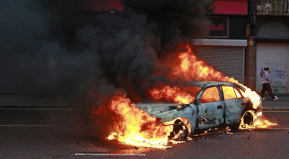 وأظهرت صورة نشرتها الشرطة على تويتر ما بدا أنها مركبة تحترق بشارع بيشوب بوسط المدينة.