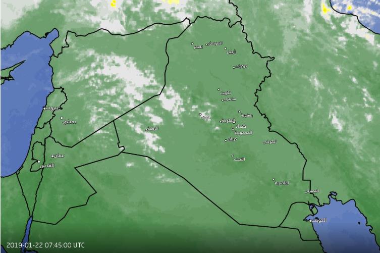وقال المتنبىء الجوي الأقدم في مطار البصرة، صادق عطيه، في منشور له على "فيسبوك" اليوم، 22 كانون الثاني 2019، ان السحب التي ترصدها الاقمار الصناعية الان مازالت تتواجد في سماء غرب ووسط البلاد، مبينا ان هناك توقعات بهطول قطرات من الامطار تشمل شمال وشرق الانبار وجنوب الموصل والعاصمة بغداد وجنوب صلاح الدين.