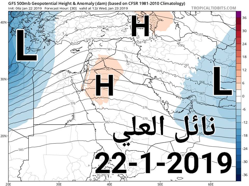 وذكر المتنبىء الجوي نائل العلي المشرف على صفحة "حالة الطقس في العراق"، في تدوينة على موقع التواصل الاجتماعي فيسبوك اليوم، (22 كانون الثاني 2019)، ان النشرة الجوية في العراق تتضمن ما يأتي: