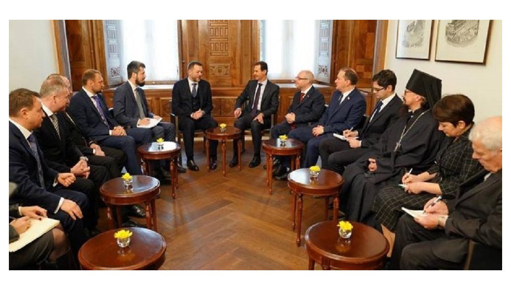واستقبل الرئيس السوري بشار الأسد يوم 17 كانون الثاني/ يناير الجاري، وفدا من حزب "روسيا الموحدة" برئاسة عضو مجلس الدوما الروسي، دميتري سابلين، حيث جلس الأسد مع الضيوف إلى طاولات صغيرة وعلى كل واحدة منها تم وضع وردة صفراء اللون.