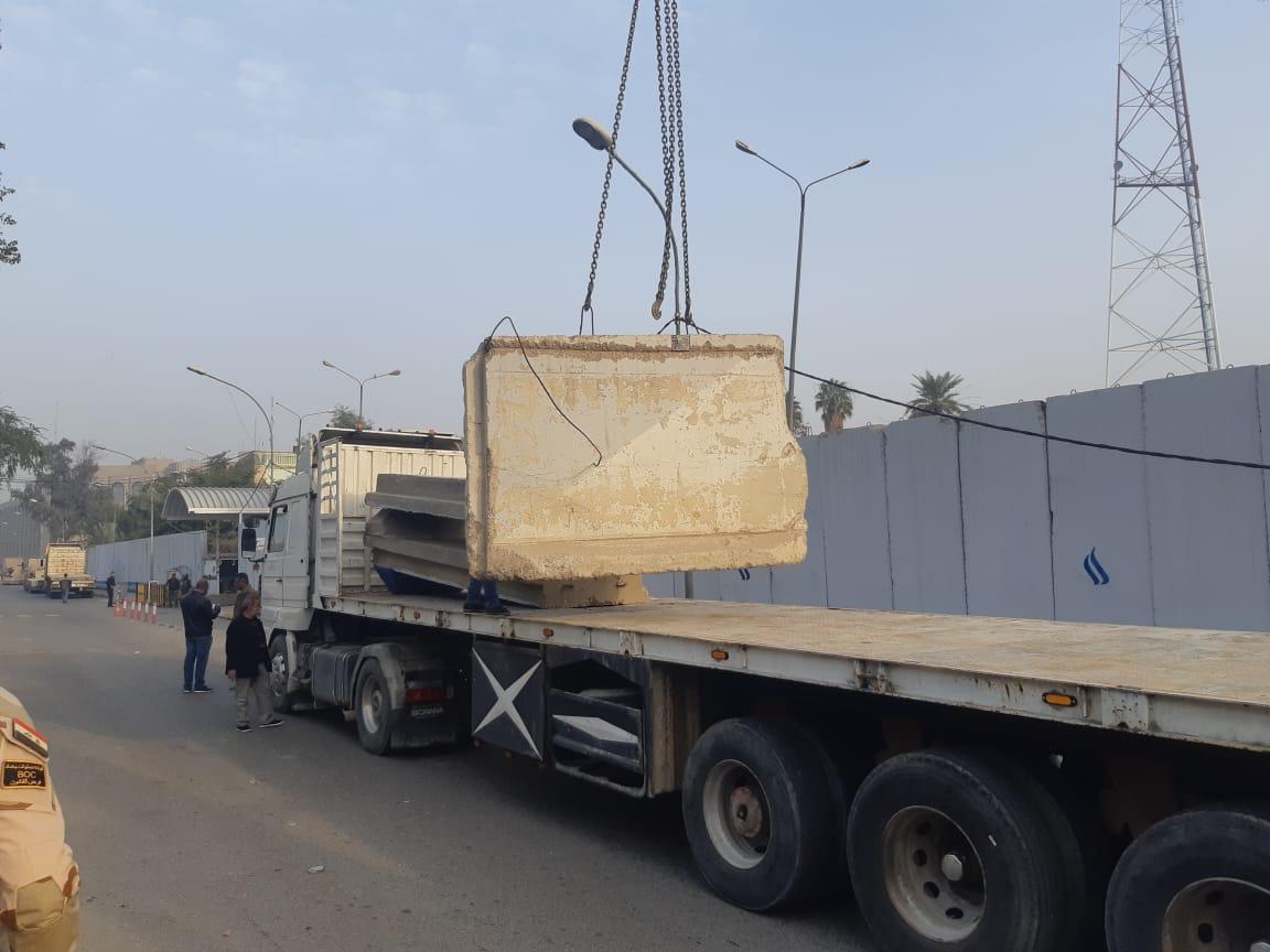 وقالت الامانة انه "تمت المباشرة برفع الكتل الكونكريتية (الصبات) من الطريق الرابط بين جسر الأحرار (ساحة الملك غازي) وصولاً الى جسر السنك وسط بغداد". واضافت الامانة ان "هذا الطريق يمر بمبنى الاذاعة والتلفزيون ومبنى مجلس محافظة بغداد"، مشيرة الى ان "ذلك جاء بالتنسيق مع القوات الامنية".