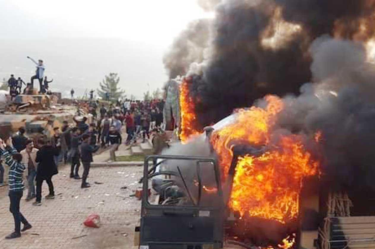 وكان مصدر امني افاد، امس السبت، بقيام متظاهرين بحرق احد المقرات التابعة للقوات التركية والاستيلاء عليه في ناحية شيلادزي التابعة لقضاء العمادية على خلفية مقتل خمسة عراقيين بقصف الطائرات التركية.