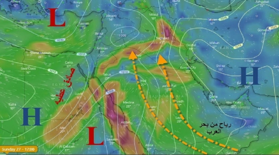 وأشار عطيه الى ان" زيادة اندفاع هذه الرياح هو وجود مرتفع جوي على شبه الجزيرة وبحر العرب وعادة الرياح تهب نحو مناطق الضغط المنخفض الذي يؤثر علينا حاليا حيث وصل الضغط على العراق حوالي 1013 مليبار"، لافتا الى انهه" سينخفض اكثر وستزداد الفروقات الضغطية التي تسبب زيادة قوة الحالة الناتج عن اندفاع المزيد من الرطوبة السطحية التي تساهم في توليد فروقات حرارية".