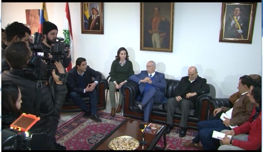 الاعلاميون والسياسيون اللبنانيون والفلسطينيون وقاموا بزيارة السفارة الفنزويلية في بيروت، واعلنوا هناك عن تضامنهم مع الجمهورية الفنزويلية ضد البلطجة الاميركية ومحاولة سرقة مقدراتها، مؤكدين ان المعركة واحدة في اطار مقاومة الهيمنة الامبريالية .