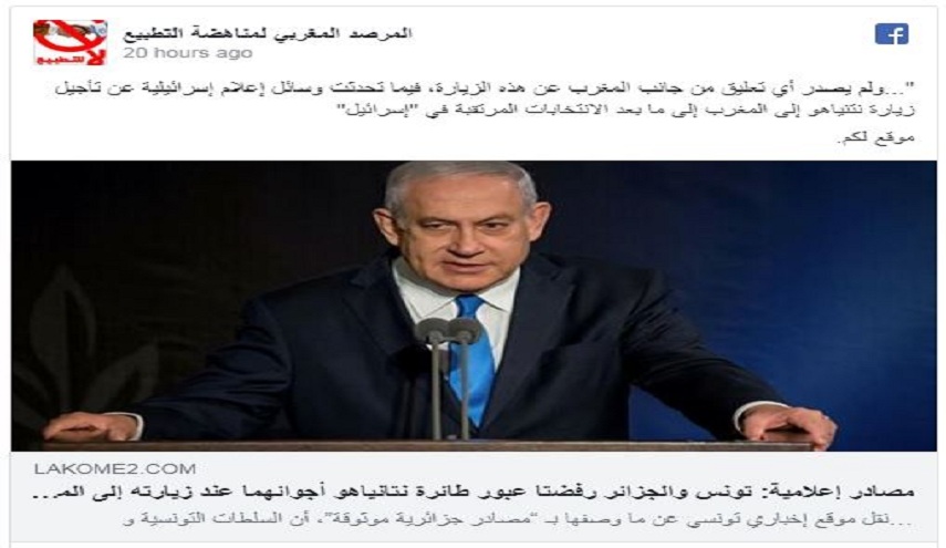 ووفقا لمنظمة "المرصد المغربي لمناهضة التطبيع" غير الحكومية، فقد زعمت وسائل إعلام إسرائيلية أن "نتنياهو يخطط لزيارة المغرب في مارس أو أبريل القادمين" بحجة تقديم مقترح أمريكي يهدف إلى تسوية الأزمة في الصحراء الغربية.