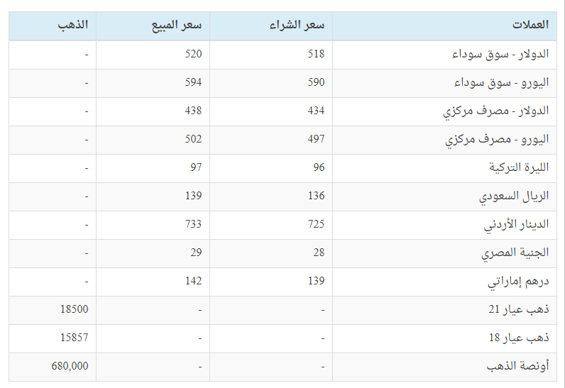 وكانت أسعار الصرف وفق الجدول التالي: