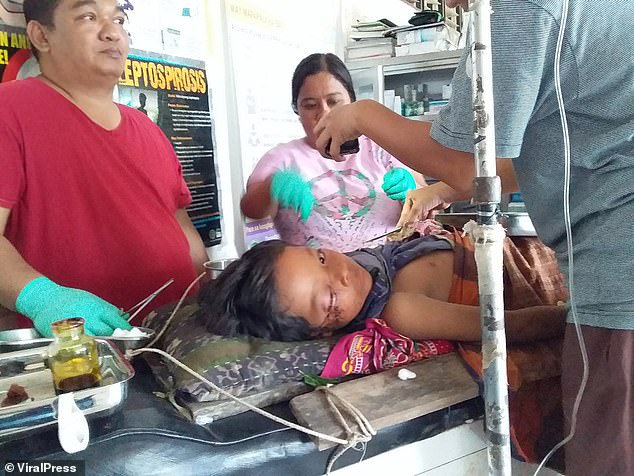 وذكرت صحيفة "Manila Bulletin"، أن التمساح ظهر عندما كان المراهق يستحم في النهر مع شقيقه الأصغر. وانقض التمساح المفترس على المراهق وسحبه من يده اليسرى وجره إلى المياه. وركض الأخ الأصغر إلى منزل ذويه وأخبرهم بما حصل لشقيقه الأكبر فهرع الوالد لنجدة ابنه. وحاول الوالد ضرب التمساح بقبضته، ومن ثم انقض عليه بأسنانه وعض مخلبه لعدة دقائق. وقال المتحدث باسم الشرطة المحلية: "قام بعضّ التمساح عدة مرات من أطرى مكان في جسمه، في محاولة لإنقاذ ابنه". ولم يتحمل التمساح عضات الوالد القوية، فأفلت الفتى وترك المكان سابحا في اتجاه آخر، وأسعف الولد إلى المستشفى حيث قدمت له الرعاية الطبية اللازمة.
