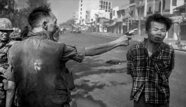 وبعد وصول الدورية بالرجل المقيد إلى الضابط المسؤول عنها، توقع المصور أن يجري الضابط ولو تحقيقا سريعا مع المعتقل، لكنه رفع مسدسه وأطلق النار على رأس الموقوف بدم بارد، لتلتقط كاميرا المصور الأمريكي آخر لحظة في حياة هذا الفيتنامي البائس، وتسجل وحشية عسكري قاتل صفّى ابن جلدته بدم بارد وبلا رحمة.