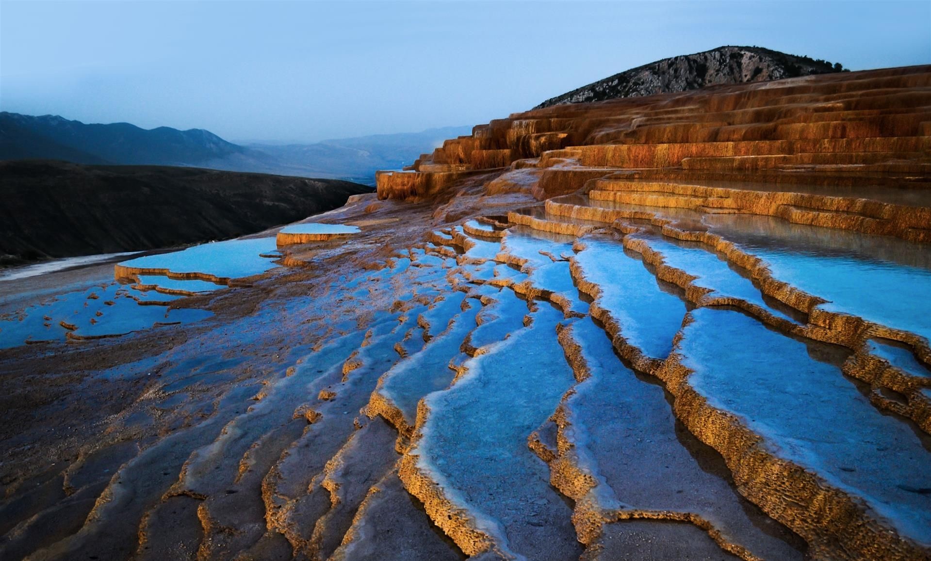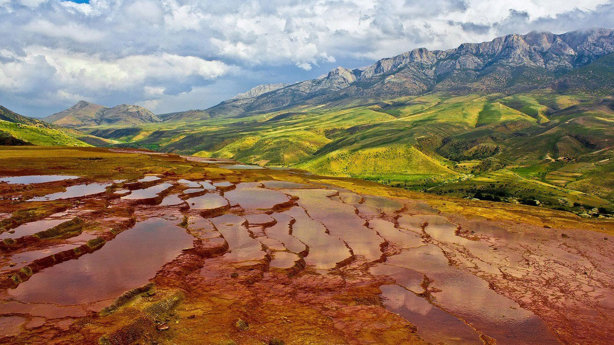 تنبع هذه الينابيع على شكل قطرات من صخور بلورية متدرجة على شكل طبقات مسطحة تتدرج نحو الأعلى، وعند السير عليها نحو الأعلى تكون هذه العيون برتقالية اللون لكن حين الاستدارة نحو الخلف نجد ان الأرض والمياه التي تقع في الأسفل لونها يتراوح بين الأخضر والأزرق ان هذا الأختلاف في الألوان يعود إلى اختلاف حموضة الماء وانخفاض ملوحته تدريجياً حتى يصل إلى طعمه المتعادل.