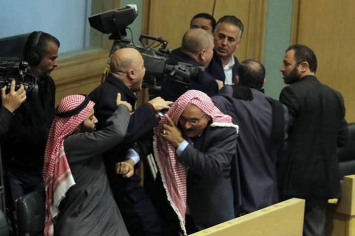 وكانت مشاجرة نشبت تحت قبة البرلمان الأردني، شهدت تراشقا بكؤوس المياه وضرب بـ"العقال".