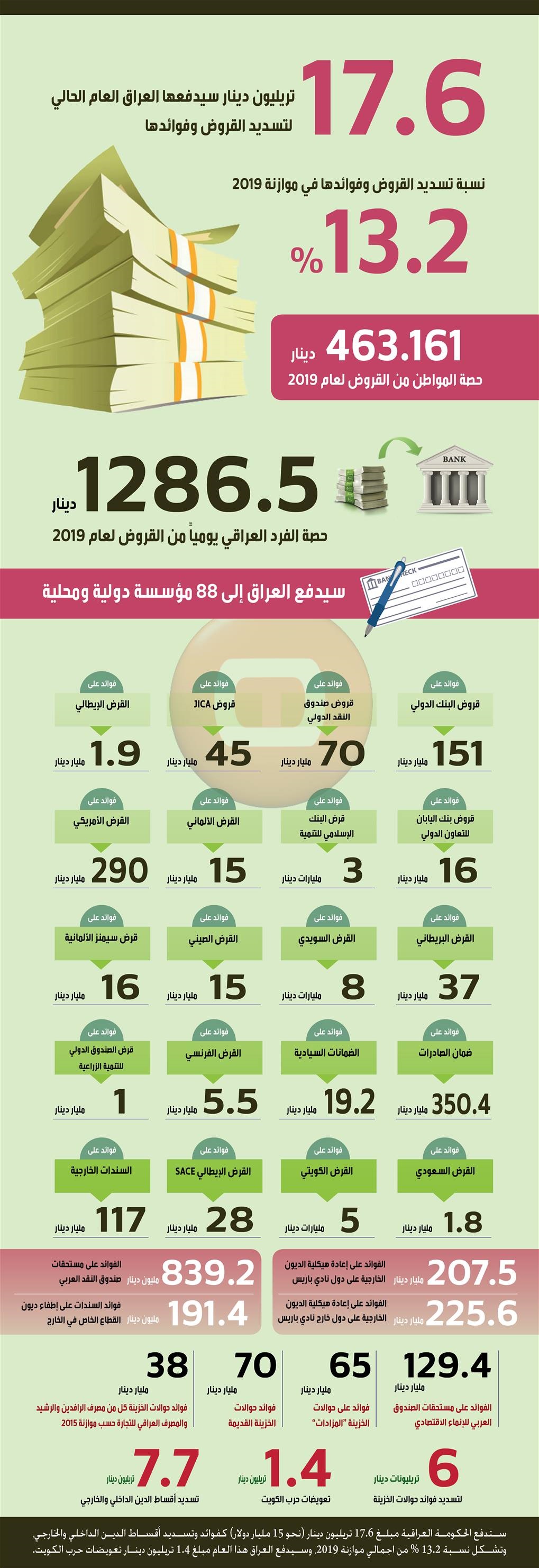بالانفوغراف... هذه حصة المواطن العراقي من القروض لعام 2019