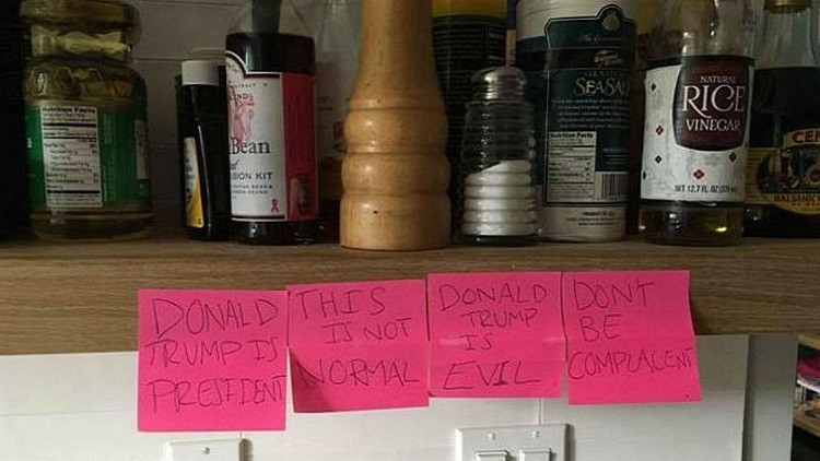 وذكرت صحيفة "ديلي ميل"، أن صورة غلاف الصفحة تظهر سلسلة ورقات لاصقة وردية اللون كتب عليها: "دونالد ترامب رئيس"، "هذا ليس طبيعيا"، "دونالد ترامب شرير" و"لا تكن راضيا".