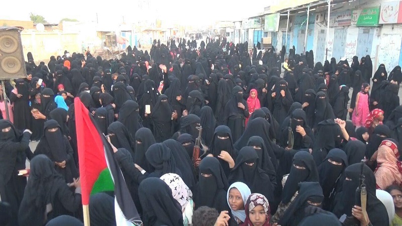 المشاركات في المسيرة اعتبرن هرولة العربان من أمراء وملوك باتجاه التطبيع دليل على ما وصل إليه هؤلاء من خنوع وانبطاح للعدو الإسرائيلي لم يسبقهم إليه أحد.