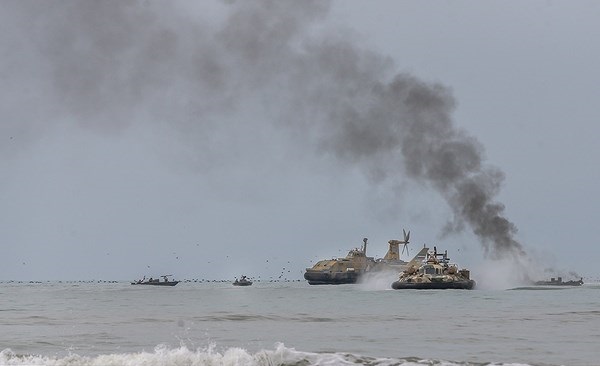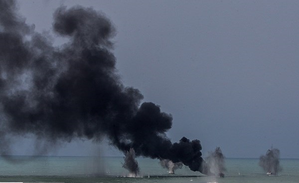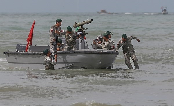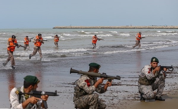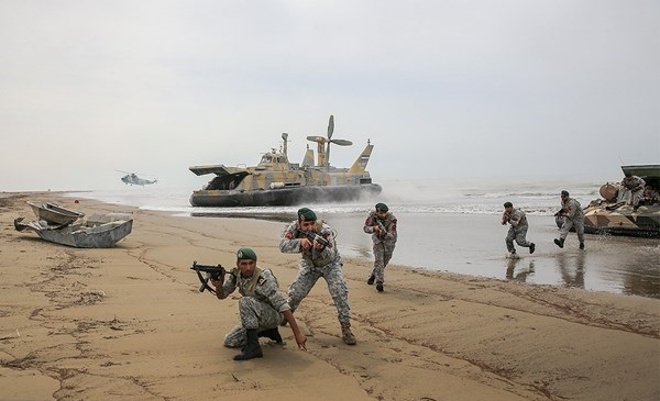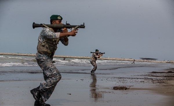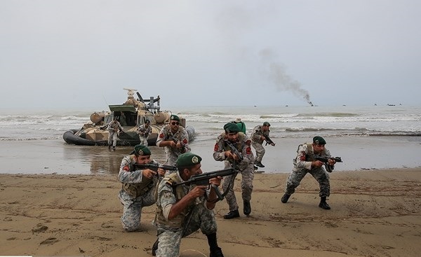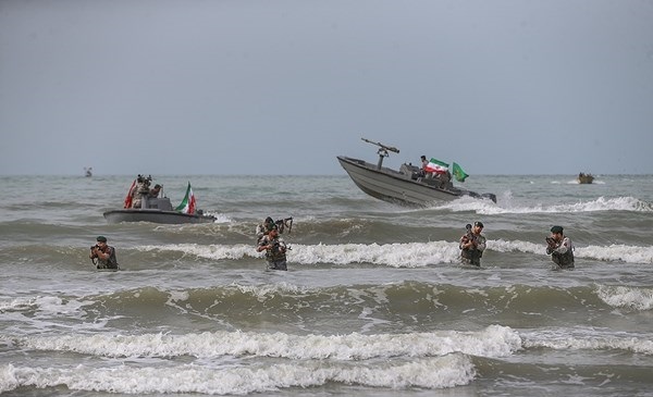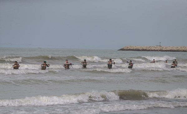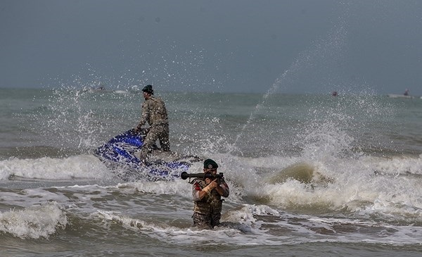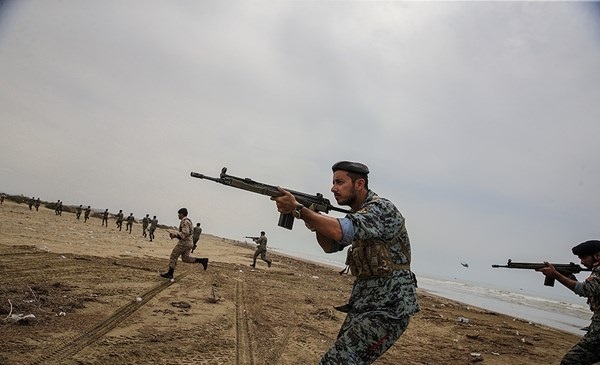 استخدمت وحدات المغاوير ومشاة البحرية الايرانية أمس الجمعة في اليوم الاول من المناوارات البحرية الكبرى "الولاية 97" مختلف انواع العدد والاسلحة بينها الزوارق السريعة والسفن الهجومية واطلاق المدمرات للصواريخ الموجهة صوب اهداف معدة سلفا في هجوم على السواحل الجنوبية لايران.