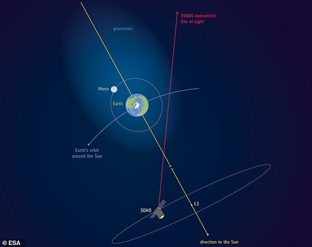 وأجريت الملاحظات بواسطة أداة "SWAN" الموجودة على المركبة الفضائية "سوهو"، والتي تتبعت علامات الهيدروجين في جميع أنحاء "geocorona"، ما كشف امتدادها ضعف المسافة إلى القمر.