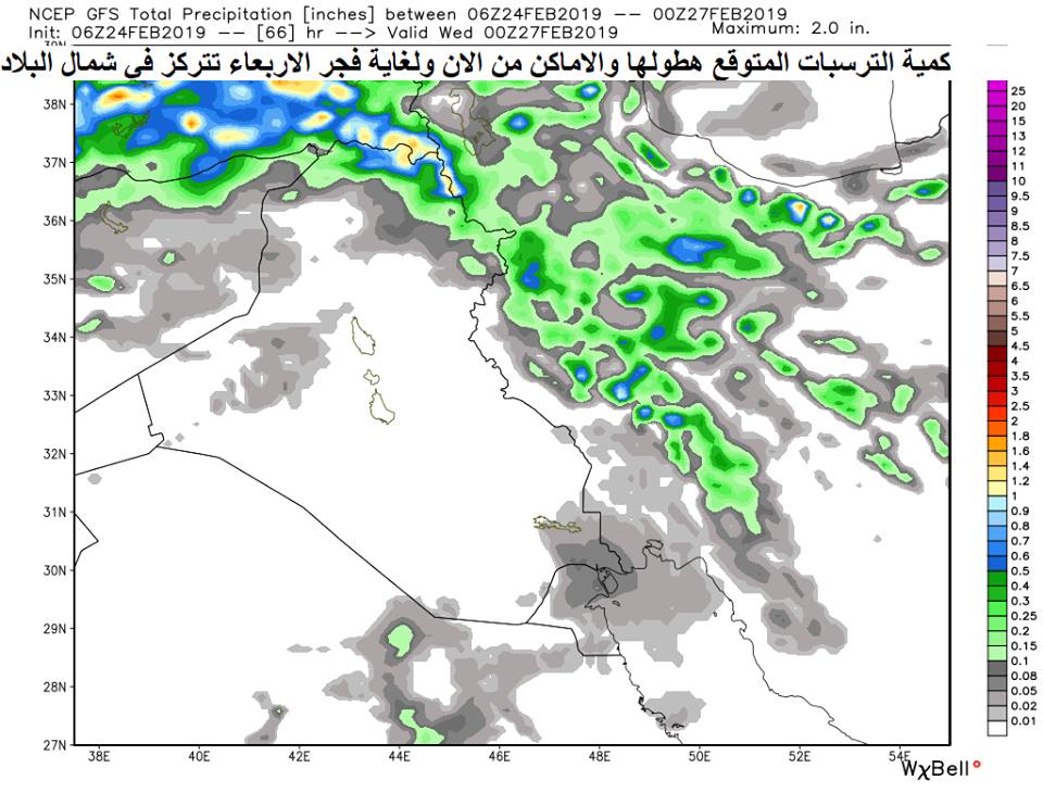 وأشار" لكن تأثيره الى الآن غير واضح وفيه بعض الغموض والارجح انه سيكون ضعيفا على البلاد بسبب تخلي المنخفض العلوي عنه خلال مسيرته مما يسبب هطول امطار خفيفة رعدية احيانا ابتداءا من غد الاثنين مصحوبة بنشاط للرياح السطحية خصوصا ليل الاثنين والثلاثاء"
