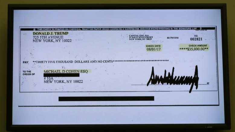 كما كشف كوهين أن ترامب أمره بدفع 130 ألف دولار لممثلة الأفلام الإباحية ستورمي دانيلز للسكوت عن علاقتها بالرئيس، في انتهاك لقوانين تمويل الحملات الانتخابية. كما عرض شيكا بتوقيع ترامب منحه له كي يغطي جزءا من المبلغ الممنوح لها.