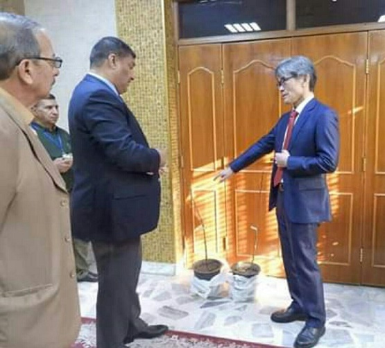 وكانت الهدية عبارة عن عدة شجيرات {ساكورا} صغيرة معه جلبها سفير اليابان لدى العراق من بلاده لتجربة زراعتها في العراق، حتى انه وقام بتقديم اثنتين منها لتزرع في متنزه الزوراء مع الأمل بتكثيرها في حال نجاح التجربة.