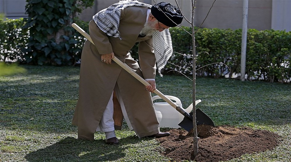 وبحسب الموقع الاعلامي لمكتب قائد الثورة الاسلامية فقد قام قائد الثورة الاسلامية صباح اليوم بغرس شتلتي شجرتي فاكهة تزامنا مع يوم الشجرة وانطلاق اسبوع الموارد الطبيعية .