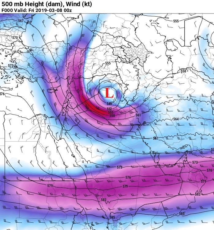 وذكر المتنبئ الجوي الاقدم في مطار البصرة الدولي صادق عطية، اليوم الجمعة 8 آذار 2019 أن "المنخفض في طبقات الجو العليا يبدو أنه لايريد المغادرة قبل ان يترك بصمة من المفاجئآت.. وهو الان يتمركز في شمال البلاد وتندفع منه تيارات باردة لتؤثر على مدن الوسط وبعض مدن الجنوب مع تواجد امتداد رطب هو منخفض جوي اتخذ من بحر العرب ثم ايران طريقا له .