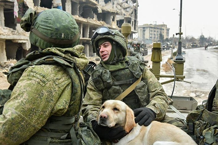 وشاركت الكلاب المدربة في هذا المركز التعليمي المشترك بين الإدارات الواقع في ضواحي موسكو في إزالة الألغام من مدن ومناطق الجمهورية العربية السورية مع مهندسي الوحدات الهندسية.
