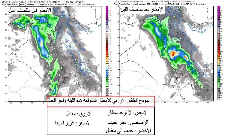 ولفت المتنبئ الجوي إلى انه "مع استمرار فرص الامطار على مدن الشمال خلال يومي الجمعة والسبت، ايضا التوقعات تشير الى عودة فرص الامطار على مدن وسط البلاد وغربها وبعض من مدن الجنوب خلال ليل يومي السبت وصباح الاحد".