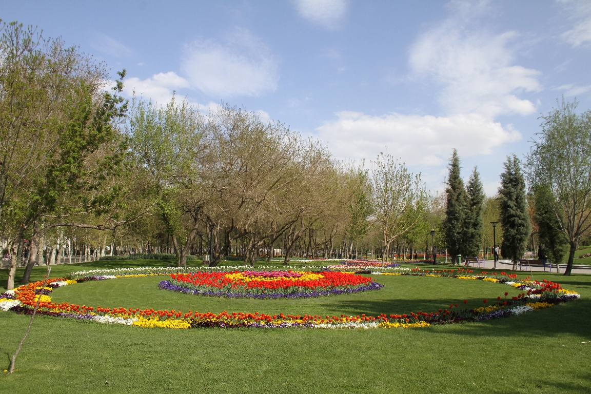 ان مساحة الحديقة هي 34 هكتار، حيث ان 23 هكتار منها مروج (عشب أخضر)، و2.3 هكتار غابات أشجار، و0.2 هكتار مخصصة للورود. كما ويوجد أكثر من 120 نوع من الأشجار والشجيرات وكذلك أشجار الفواكه ومنها التفاح، المشمش، الخوخ، التوت، السفرجل، الموز، الخرمالو، التين، بالإضافة إلى أشجار السدروس، الصنوبر، الجلنار، النارون، الأقاقيا، البيدمجنون، وأنواع مختلفة من السرو، التبريزي، بداغ، يوکا، ارغوان، برگ بو، ترون، شمشاد، السرو بادبزني، النوئل الفضي، کاج الکانديلا، التوري، ختمي، ياس الشيرواني، شمشاد البرتقالي.