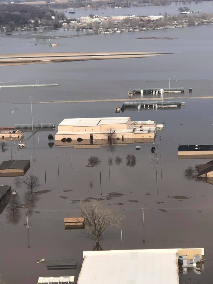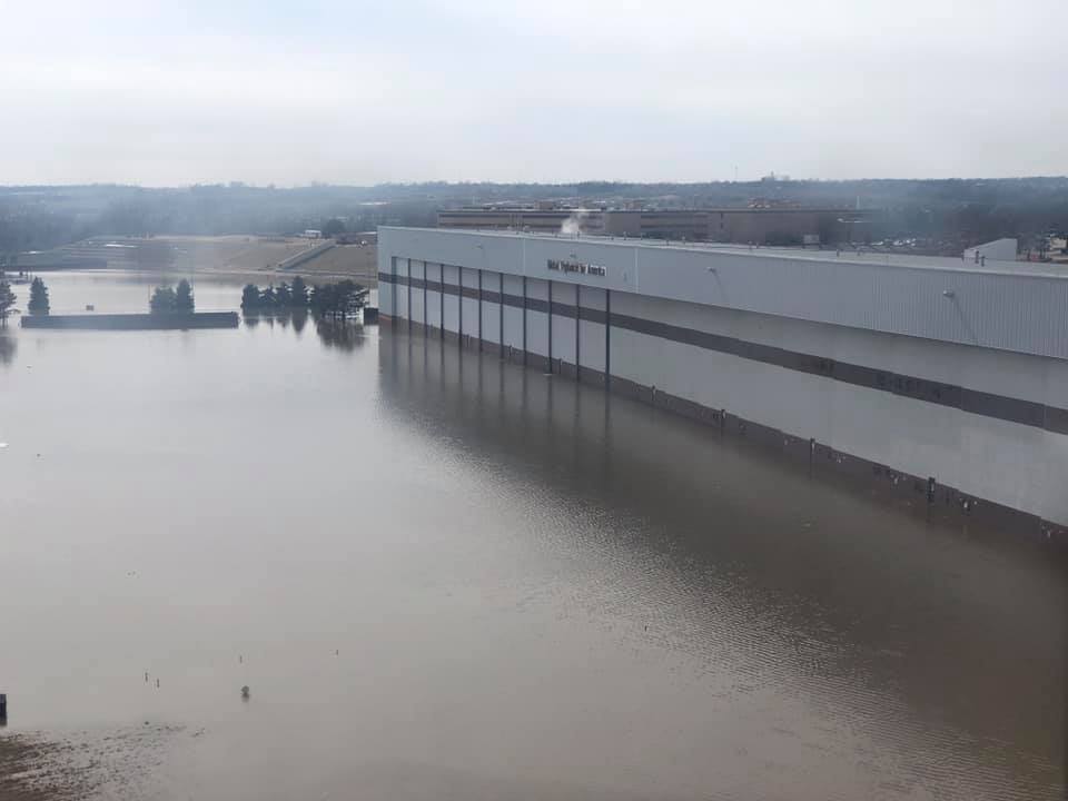 تجدر الإشارة إلى أن القاعدة الجوية قد غمرتها المياه بنحو الثلث، وأصيب 30 من أصل 200 مبنى فيها بأضرار جسيمة، حيث تضررت حظائر الطائرات، كما غمرت المياه حوالي كيلومتر من مدرج القاعدة.
