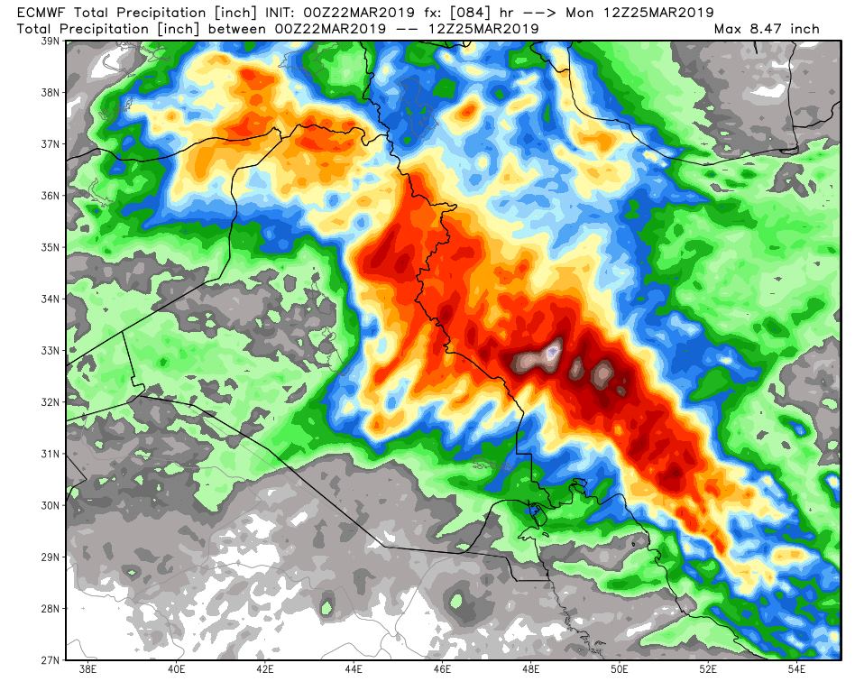 وذكر المتنبىء الجوي الأقدم في مطار البصرة، صادق عطيه، في منشور على صفحته الشخصية بموقع "فيسبوك"، اليوم، 22 آذار 2019، انه يجب الحذر من غزارة الامطار منتصف الاسبوع في بعض مناطق البلاد، حيث تستوجب أخذ الاحتياطات اللازمة من قبل الجهات المسؤولة في فرق الدفاع المدني والبلديات والمجاري.