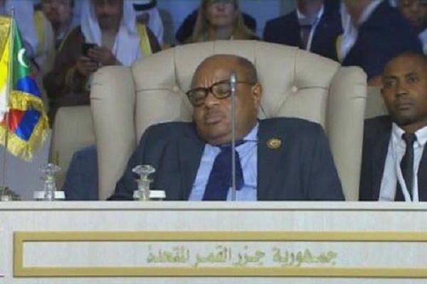 كما أظهرت الصور وزير خارجية جزر القمر "محمد الأمين وهو في غارق في نومه أثناء كلمة السبسي الافتتاحية كما هو واضح في الصور.