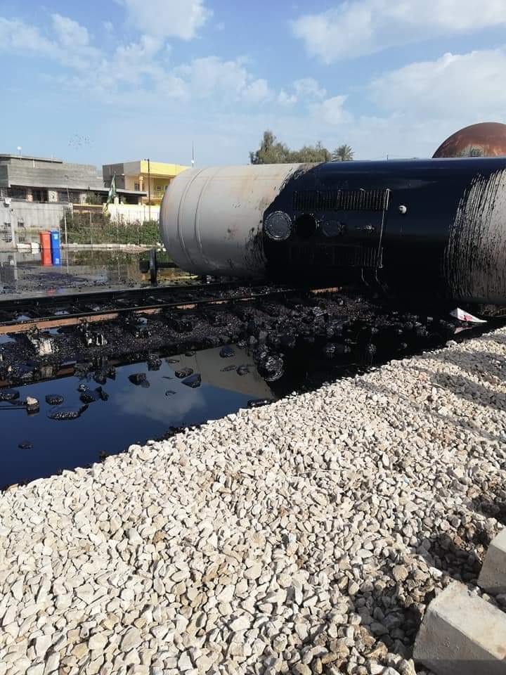 ادى انقلاب احدى عربات قطار يحمل مشتقات نفطية، الى احداث بحيرة من مادة النفط الاسود. و ان الحادث وقع لدى مرور القطار قرب مدينة الحلة مركز محافظة بابل العراقية، مشيرا الى ان الحادث لم يؤكد الى وقوع اية خسائر بشرية