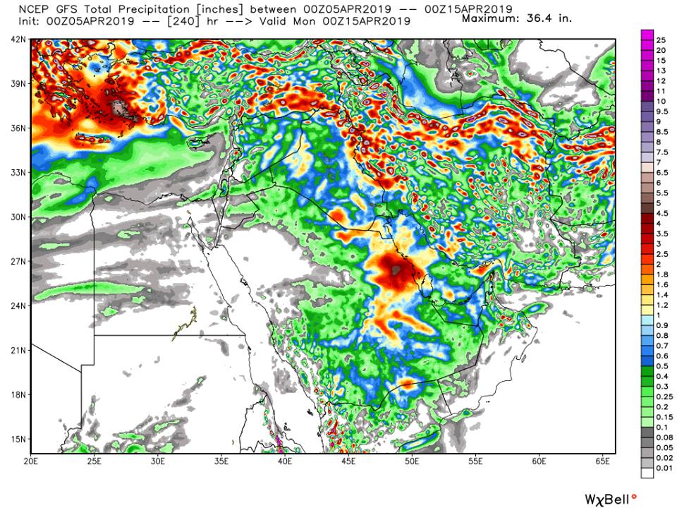 وذكر المتنبئ الجوي الاقدم في مطار البصرة الدولي صادق عطية في تدوينة له اليوم 5 نيسان 2019 أن آخر تحديثات النماذج العددية تشير الى حالة جوية أخرى غير حالة اليوم تبدأ من يوم الأحد المقبل وتستمر يومين او ثلاثة أيام بشدة متفاوتة... كذلك تتبعها عدة حالات جوية شبه شاملة.