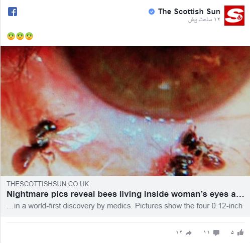 وتبيّن لأطباء مستشفى جامعة "فوين" في مقاطعة بينغتونغ جنوب تايوان، أن 4 نحلات يبلغ طول كل منها 0.12 إنش، تعيش في عيني مريضة في العشرينات من عمرها.