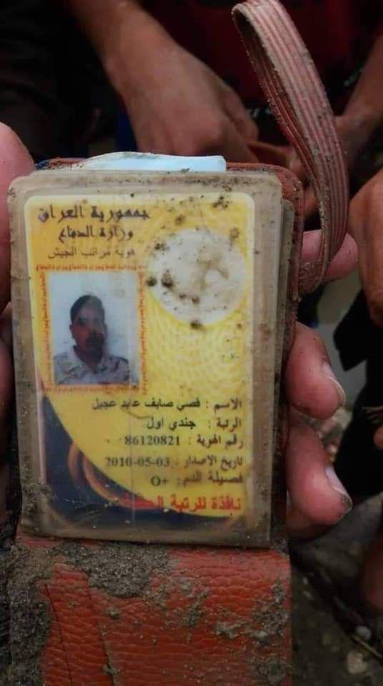 وذكر مصدر أمني  انه "تم العثور على جثة احد ضحايا عبارة الموصل وهو جندي منتسب لوزارة الدفاع وأسمه {قصي صايف عابد عجيل} بحوزته مبلغ ٣٠٠ الف دينار ومفتاح سيارة".