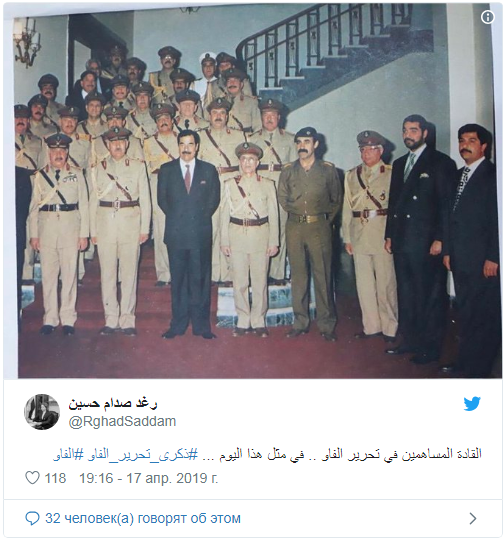 وعلقت رغد على صورة أخرى نشرتها ضمن التغريدات قائلة: إنها تظهر "القادة المساهمين في تحرير الفاو"، على حد تعبيرها.