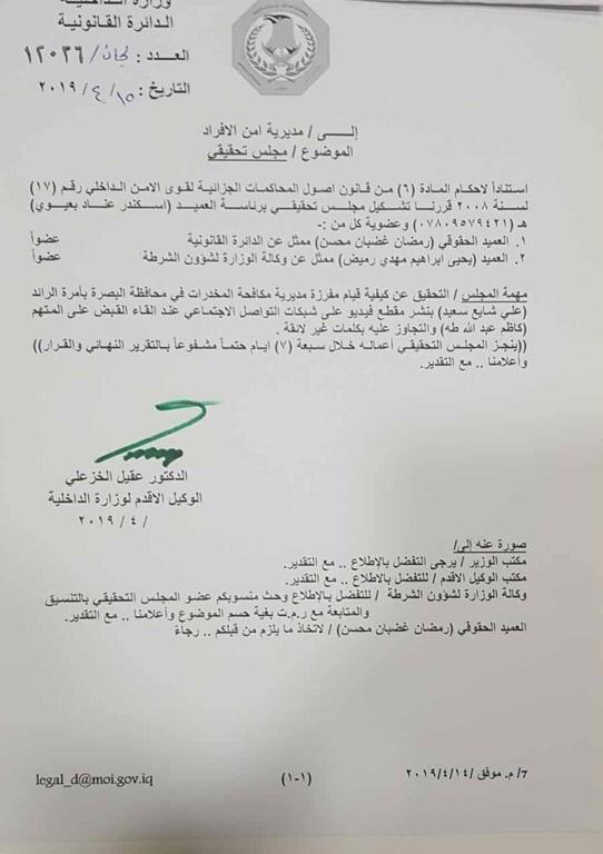 وزارة الداخلية العراقية أصدرت على الفور توضيحاً بخصوص الفيديو، وأشارت إلى تشكيل مجلس تحقيقي بشأنه.