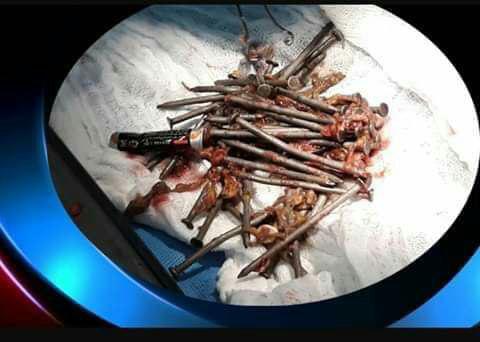 وبحسب بيان لمستشفى الحسين التعليمي في المثنى، فان المريضة كانت تعاني من آلم حاد في البطن منذ أكثر من شهر وبعد اجراء الفحوصات السريرية والاشعة اتضح وجود نزيف بالمعدة نتيجة تمزق جدار المعدة جراء تناولها لكميات من {المسامير الحديدية}.