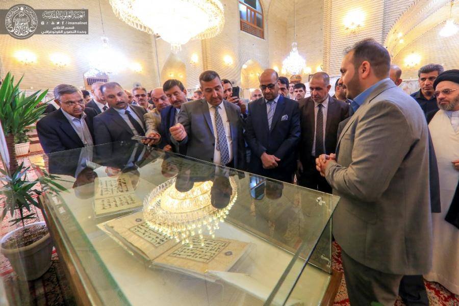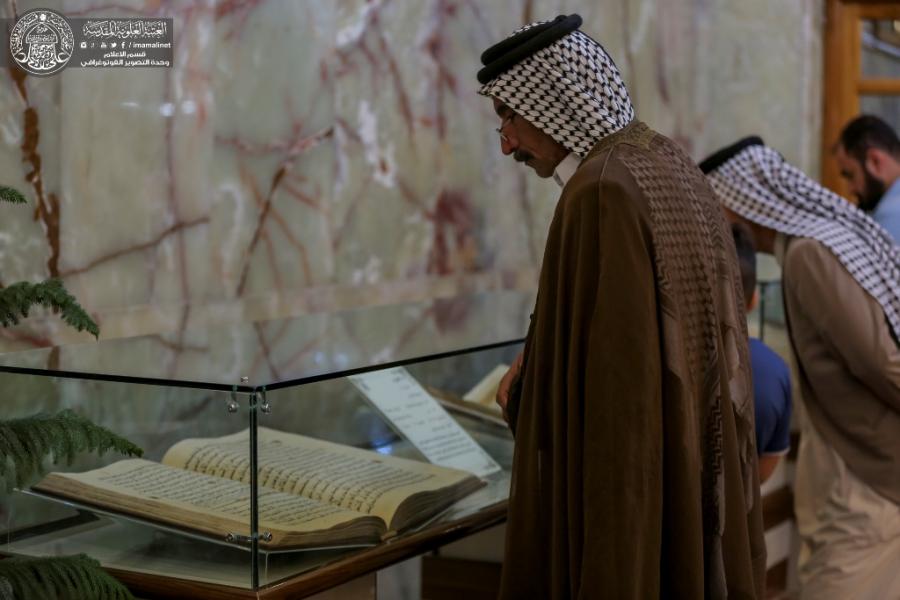 من جانبه، أكد حسين الشيباني مسؤولة شعبة خزانة المخطوطات، إن "خزانة العتبة المقدسة تحتوي على مجموعة من النفائس الخطية تبدأ من القرن الأول الهجري إلى الرابع عشر الهجري، وهي مجموعة نادرة تكاد تخلو خزانات العالم من هذه النفائس، منها نفائس خطية متمثلة بـ(المصاحف الرقية يعود تاريخها إلى القرن الأول والثاني والثالث والرابع الهجري ) منها ما كتب بالخط الكوفي الغير منقط، والخط الكوفي الأندلسي بالإضافة إلى مجموعة كبيرة من المخطوطات التي تمتاز بخطوط مؤلفيها من العالم العربي والإسلامي، منهم ياقوت المستعصمي والسهروردي، وعرضت مجموعة من المصاحف خطت بأيدي خطاطات من المدرسة الهندية والإيرانية ".