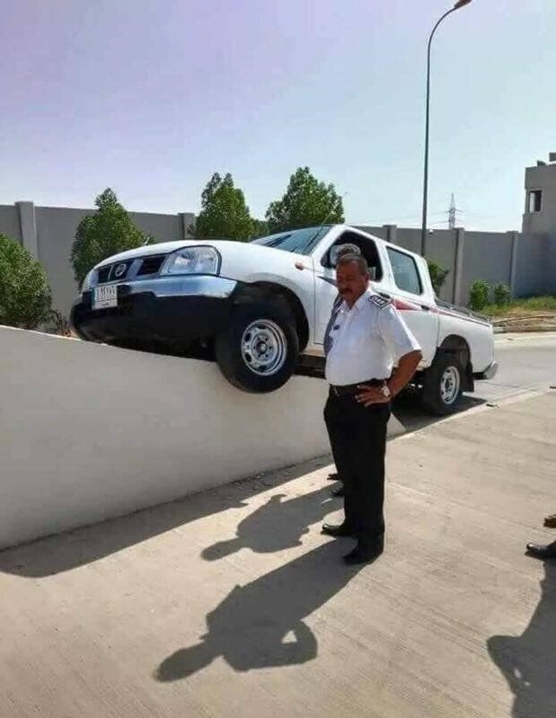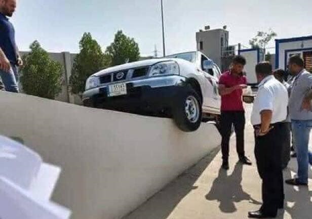 حيث تقدم شخص لاستحصال رخصة القيادة من مديرية المرور، وعند اجراء اختبار مهارة السائق في قيادة المركبة والسير في الشارع اعتلى اول مرتفع في حادث يعد الأول للسائق وسط المديرية العامة للمرور في بغداد.