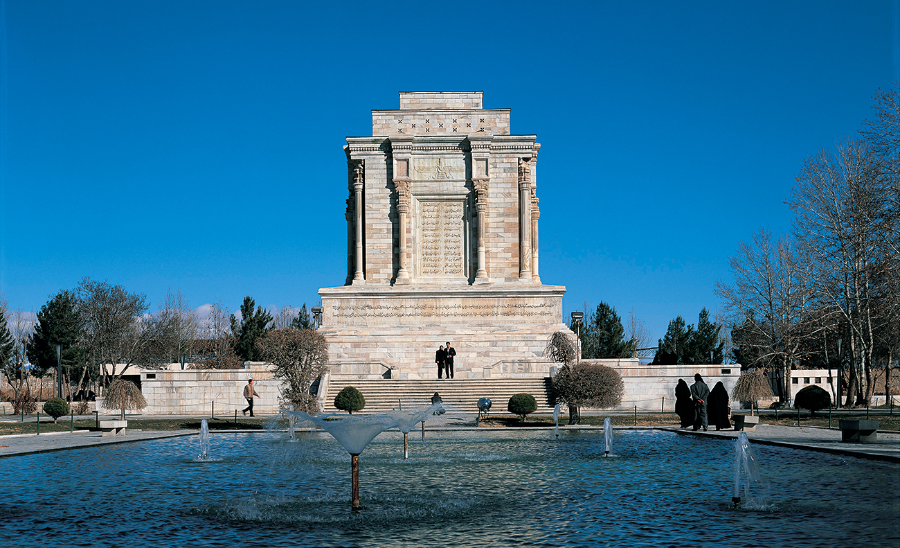تمت ازاحة الستار عن مقبرة الفردوسي الحالية بمدنية طوس القريبة من مشهد المقدسة في اكتوبر – تشرين الاول لعام 1934، وذلك بمناسبة مرور الذكرى الألفية لميلاد هذا الشاعر. مقبرة الفردوسي والتي يرمز مظهرها الى المعالم والأبنية المتبقية من العهد الإخميني وتحديداً الملك الإخميني كوروش بمدينة باسارغاد في محافظة فارس، تشكلت من أجزاء ثلاثة هي: أولاً: الجزء الداخلي وهو عبارة عن حجر قبر من الرخام في أبعاد 1/5X1، حيث كتب عليه بخط النستعليق الجميل وبهامش مزين: باسم من خلق الروح والعقل... هذا القبر مدفن استاذ ورائد الشعراء المنشدين باللغة الفارسية وناظم القصص الوطنية الايرانية الشاعر الحكيم ابوالقاسم الفردوسي الطوسي الذي تبعث أشعاره على الحياة في مملكة ايران، ومقبرته هذه لها مكانة خالدة في قلوب سكان هذه الأرض... وتاريخ ولادته عام: 329 هـ. ووفاته: 411 هـ. ثانياً: قاعة مربعة الشكل مبنية من حجر الرخام، وداخلها مزخرف بالقاشاني، وتقوم القاعة على أربعة أعمدة عالية يعلوها رأسا عمود كبيران مزينة بتجيصصات عالية جميلة على شكل السلالم. ثالثاً: المظهر الخارجي للمقبرة وهو عبارة عن مجموعة سلالم مكسوة بحجر الرخام، حيث شيدت البناية عليها، ويطالعنا عدد من أشعار هذا الشاعر الملحمي الفردوسي منحوتة على جدران البناية، فضلاً عن نقوش حجرية بارزة منحوتة على الجزأين الجنوبي والشرقي لقبو القاعة. وتحكي هذه النقوش قصصاً وحكايات عن كتاب الملحمة. تبلغ مساحة حديقة مقبرة الشاعر الفردوسي نحو ستة هكتارات وتضم متحفاً ومكتبة، حيث يرتادها سنوياً اكثر من مليون سائح ومحبّ للفردوسي وأشعاره من داخل ايران وخارجها. كما يتقدم مدخل هذه الحديقة، حوض ماء مستطيل الشكل يعكس صورة عن بناية المقبرة.