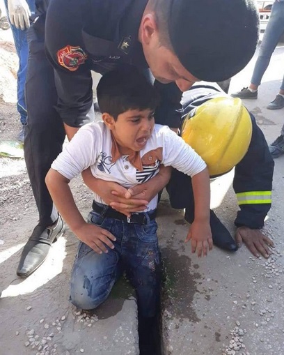 وقد تمكنت فرق الدفاع المدني في محافظة كربلاء من انقاذ طفل بعد ان سقط وعلقت قدمه في شق حفرة الكيبل الضوئي بسبب تركها مفتوحة في بعض شوارع المدينة