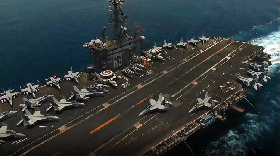 حاملة الطائرات الاميركية وبحسب الفيديو الذي عرض فإنه من المرجح ان تكون «يو أس أس جون ستينيس» والتي وصلت إلى مياه الخليج في ديسمبر ٢٠١٨، حيث كانت اول حاملة طائرات اميركية تدخل المنطقة منذ انسحاب الولايات المتحدة من الاتفاق النووي المبرم بين إيران والدول الست عام 2015، وواكبت زوارق الحرس الثوري انذاك حاملة الطائرات والسفن المرافقة لها، وأطلقت الزوارق طائرة من دون طيار، واختبرت صواريخ بعيداً من حاملة الطائرات، بحسب وكالة "أسوشيتد برس".