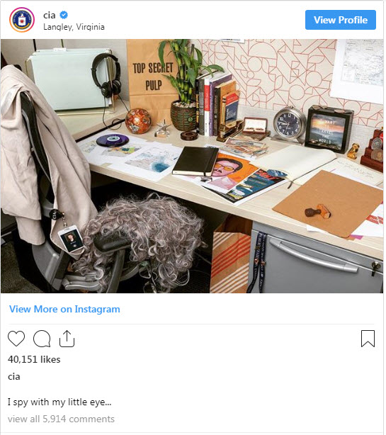 وتضمنت الصورة التي كُتب عليها "أنا أتجسس بعيني الصغيرة"، والتقطت في مقر الوكالة، شَعرا مستعارا وخرائط، وقطعا وأوراقا نقدية أجنبية، وعدة أشياء ومحتويات أخرى.