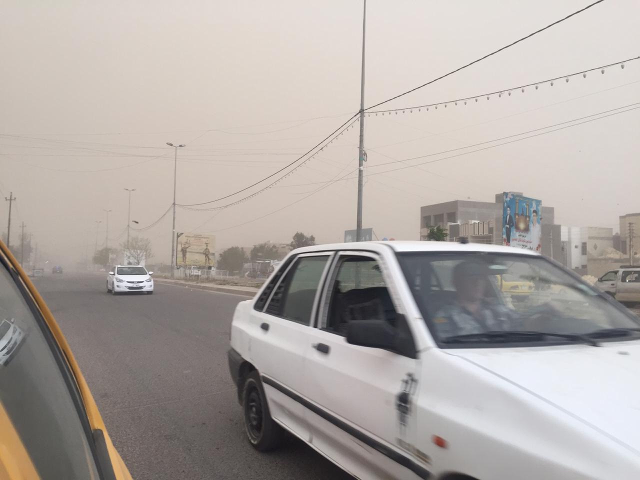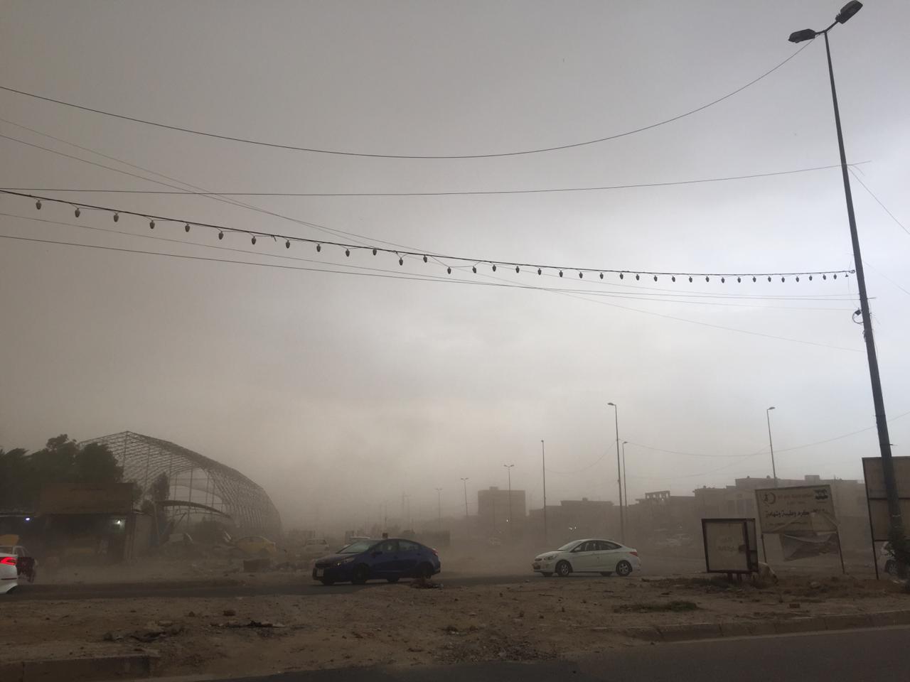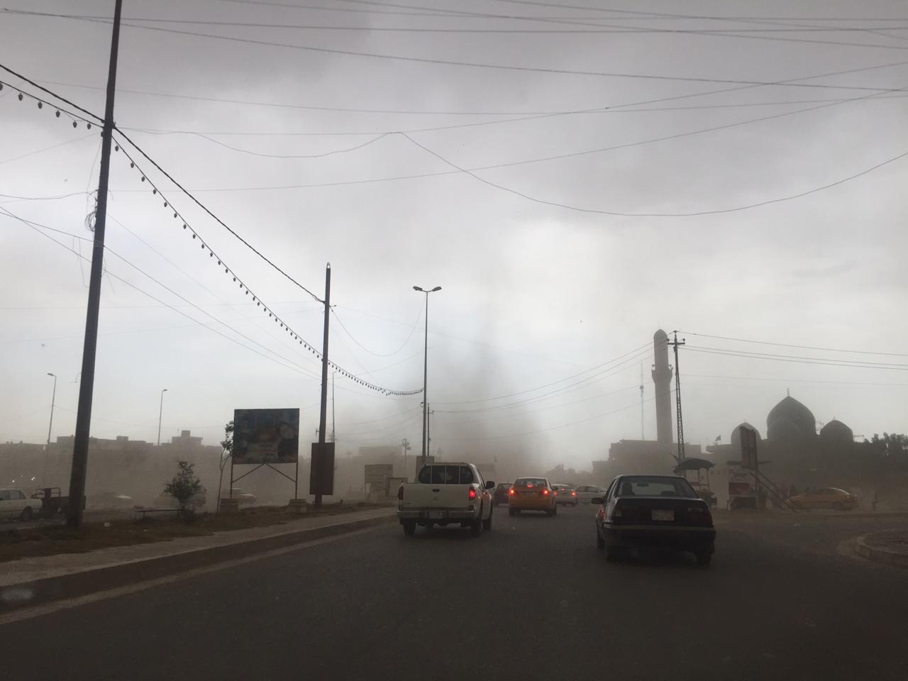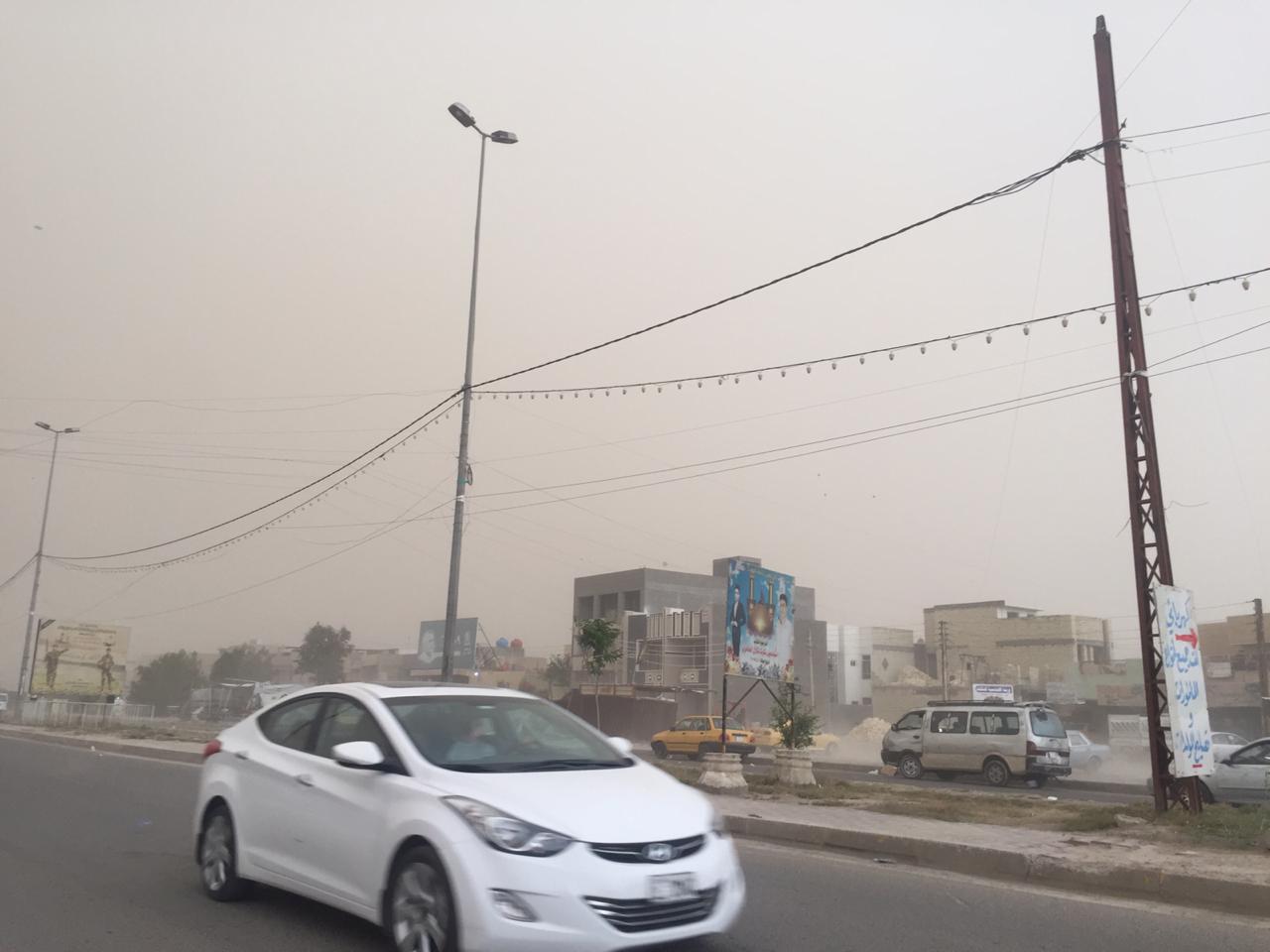 وضربت العاصفة الترابية اغلب مناطق العاصمة العراقية، ما تسبب بانخفاض مدى الرؤية.