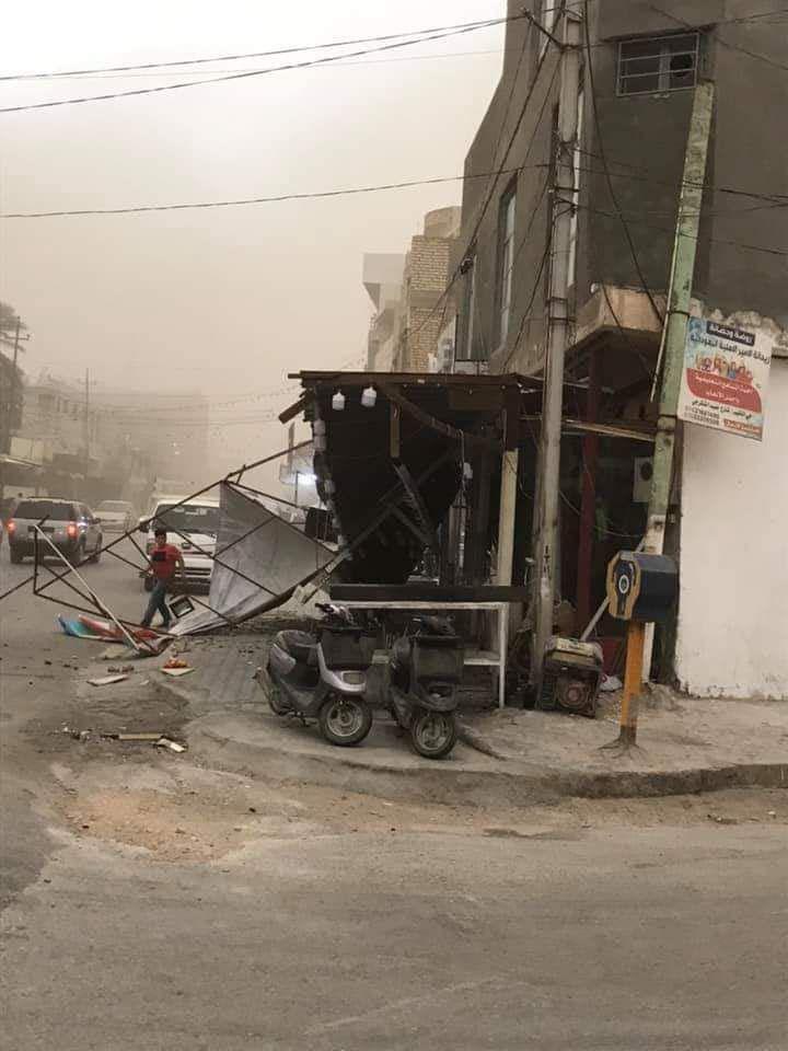 وذكرت وكالة الفرات نيوز ان" العواصف الترابية تسببت بوفاة شخصين وإصابة 20 آخرين، اليوم الاثنين في محافظة كربلاء كما تسببت بحوادث مروريه في شوارع المدينة اضافة الى قطع التيار الكهربائي عن معظم احياء المحافظة".