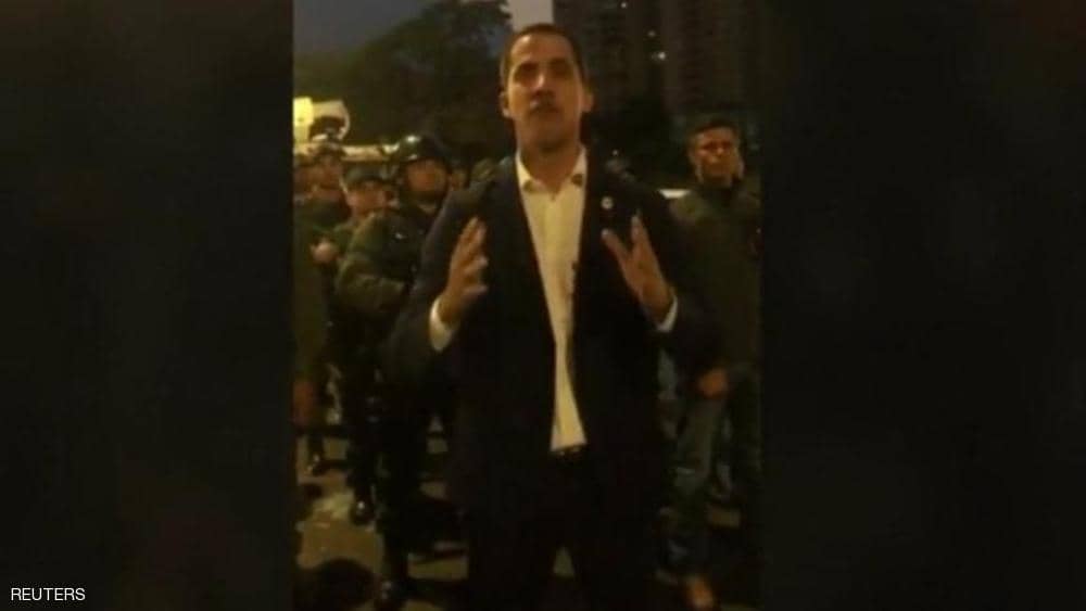 هذا وأعلن زعيم المعارضة في فنزويلا، خوان غوايدو، اليوم بالقرب من قاعدة جوية في العاصمة كراكاس أنه تلقى دعمًا من عسكريين. وأدلى غوايدو بهذا التصريح وهو واقف بالقرب من القاعدة العسكرية وتحيط به مجموعة من الرجال في زي عسكري.