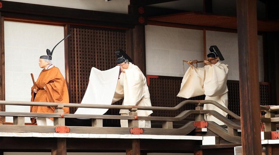 وكان الإمبراطور توجه صباح اليوم الثلاثاء إلى القصر الإمبراطوري للقيام بطقوس عبادة لآلهة الشمس وأرواح أجداده وعدة آلهة أخرى.