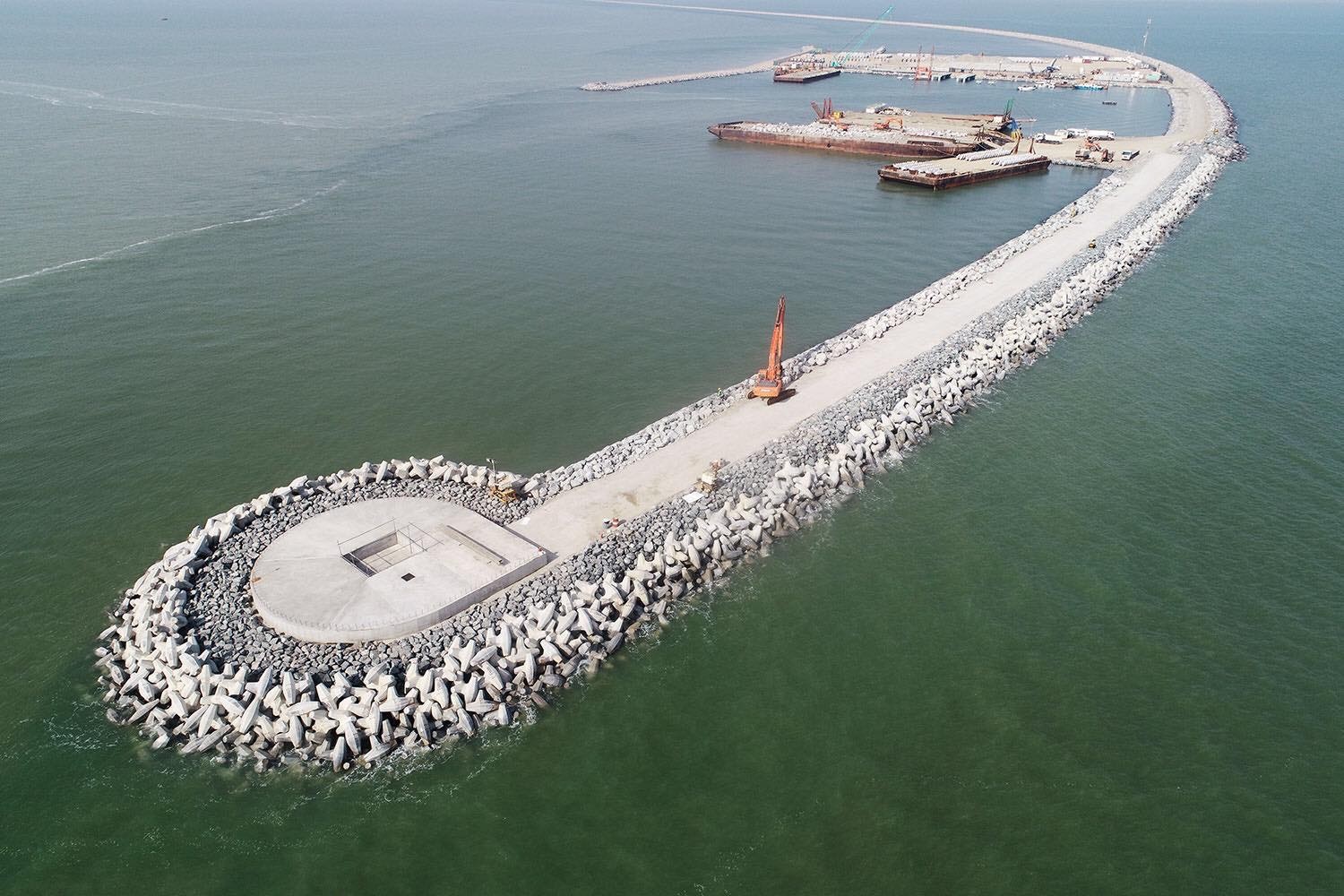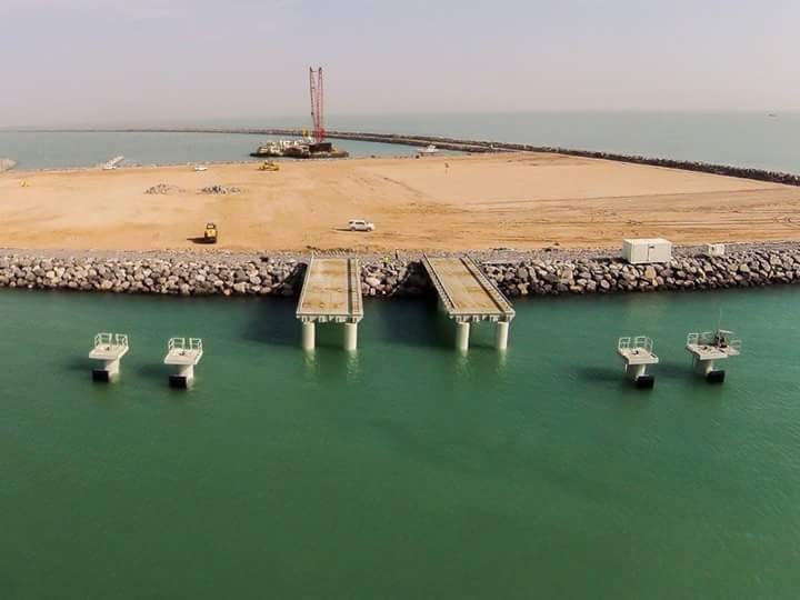 وجاء في بيان للوزارة أن "كاسر الأمواج الغربي لميناء الفاو أنجز بشكل كبير، ونحن بصدد الاستعداد لمرحلة إنشاء البنى التحتية البحرية للميناء".