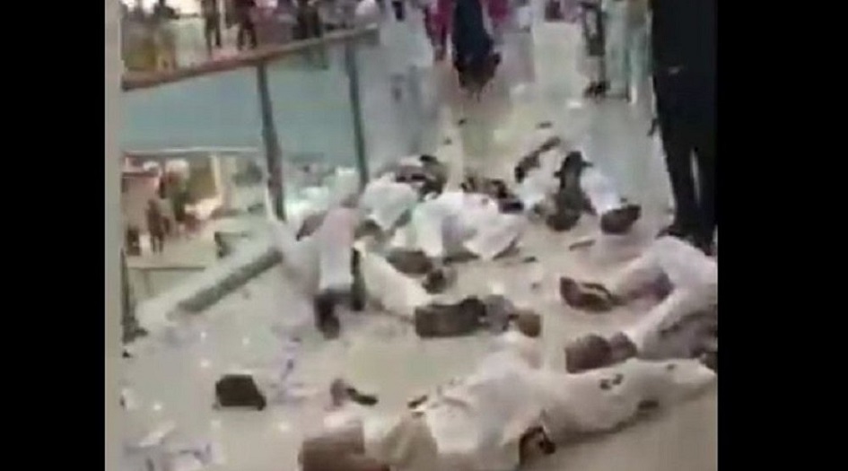 ووقع الحادث بالقرب من قاعة متخصصة لرياضة التايكواندو تقع على الطابق الثالث من المجمع، وتم إلقاء القبض على 15 شخصا للتحقيق ومعرفة ملابسات الحادث.